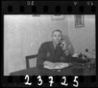 Jewish man sitting at desk with telephone