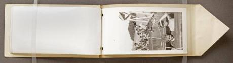 Mediumalbum: 17 gelatin silver prints are the 17 pages in a tan/brown album with green string binding