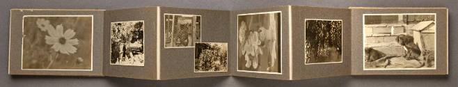 Mediumalbum: 28 gelatin silver prints on 24 pages in a canvas accordian album with painted and embossed cover