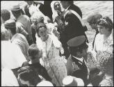 Filicudi residents at their island's port, protesting at the arrival of 15 members of the Mafia on to the island
