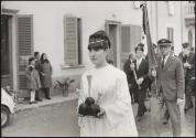 A young woman leads a religious procession
