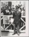 A policeman guards barriers with crowds behind him and the front page of the Christian Democracy newspaper, Il Popolo, bearing a large image of Aldo Moro pinned to it