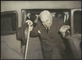 Former Prime Minister of Italy, Francesco Saverio Nitti, exiting a car holding a walking stick and hat