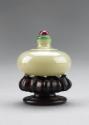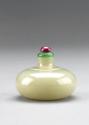 Mediumnephrite jade with pink tourmaline stopper on a green glass collar; nephrite