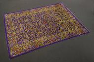Carpet: an all over scrolling vine with leaves and flowers, butterflies, arranged on a bright yellow ground